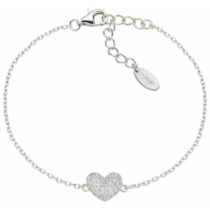 Bracciale Amen da donna in argento con cuore du dunebsuibu 8x9 cm in pavè di zirconi bianchi.