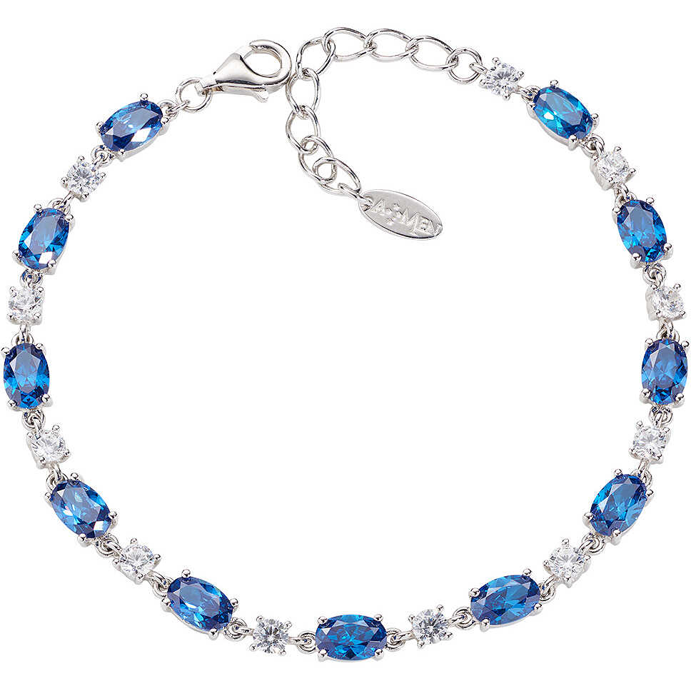 Bracciale tennis realizzato in argento con una lunghezza di 16 cm + 3 cm di prolunga e chiusura a moschettone impreziosito da zirconi blu taglio ovale e zirconi bianchi.