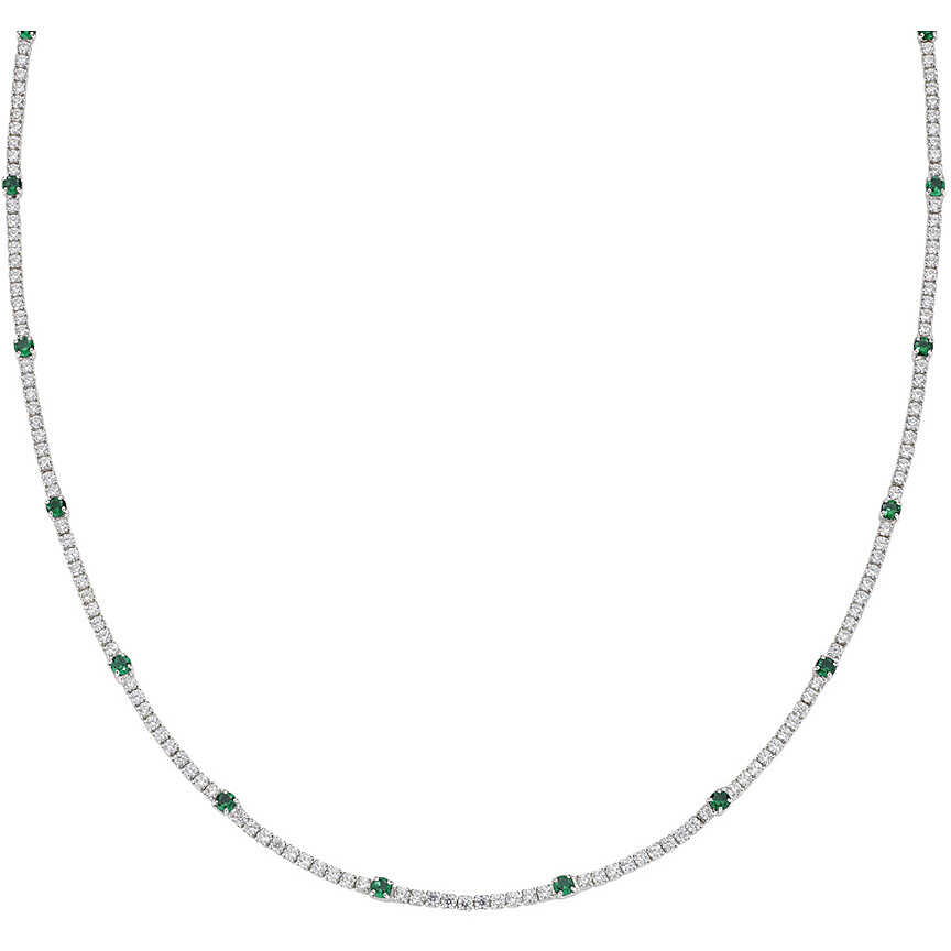 Collana Tennis realizzata in argento con zirconi bianchi da 2 mm di diametro intervallati da zirconi verdi 3mm.