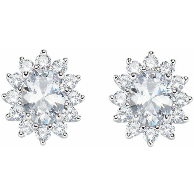 Orecchini Kate di Amen realizzati in argento con zircone centrale taglio ovale bianco e contorno di zirconi bianchi.