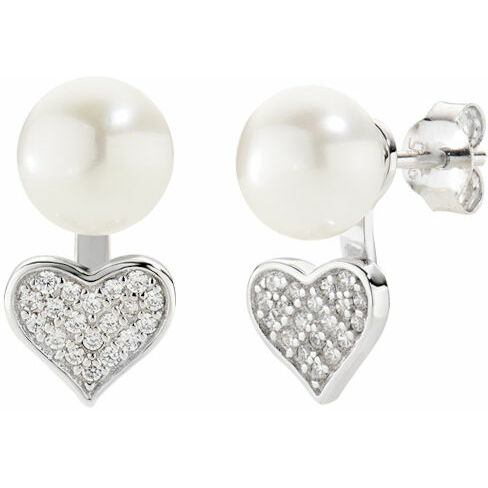 Orecchini a lobo con perla da 7 mm e pendente a forma di cuore con pavè di zirconi bianchi.