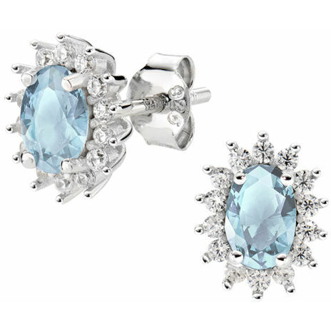 Orecchini in argento con zircone centrale blu london e contorno con zirconi bianchi.