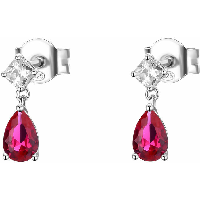 Orecchino Brosway Fancy da donna pendenti realizzati in argento con zircone quadranto bianco e goccia di colore rosso rubino. Chiusura a farfallina e lunghezza di 12 mm.
