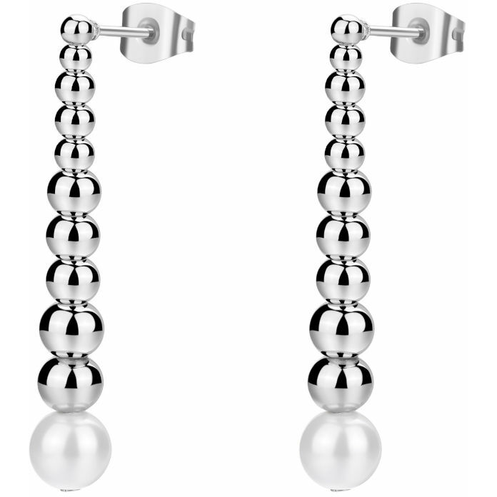 Orecchini pendenti in acciaio e perla della collezione Perfect di Brosway.