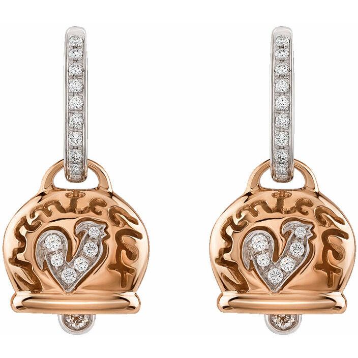 Orecchini Chantecler Campanella media in oro rosa 18kt, con gallo in pavè diamanti per una caratura complessiva di 0,50 ct.
