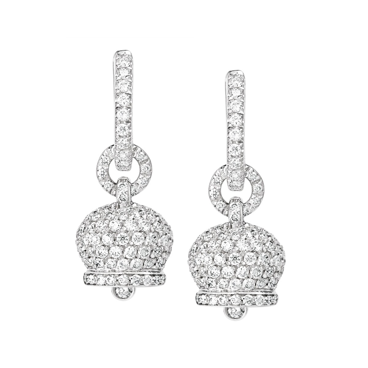 Orecchini Chantecler Campanelle piccole realizzati in oro bianco con pavè di diamanti per una caratura complessiva di 1,80 ct.