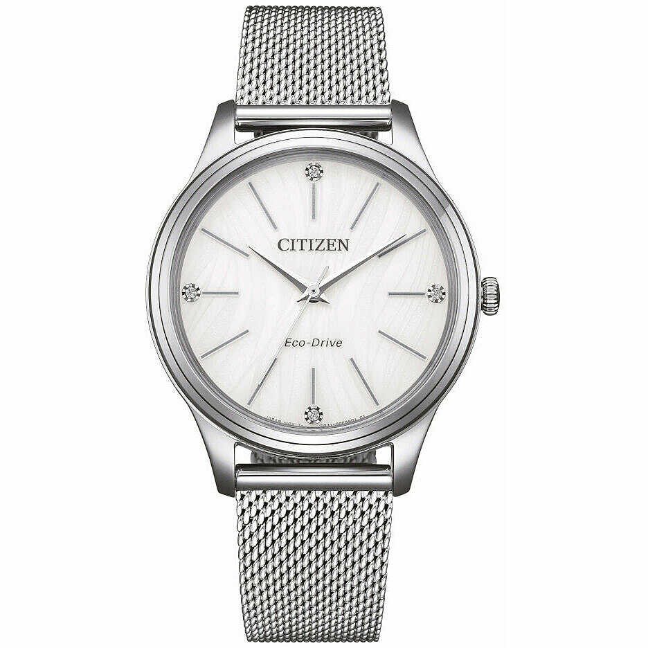 Orologio Citizen da donna realizzato con cassa in acciaio da 34 mm e cinturino in acciaio maglia milanese.