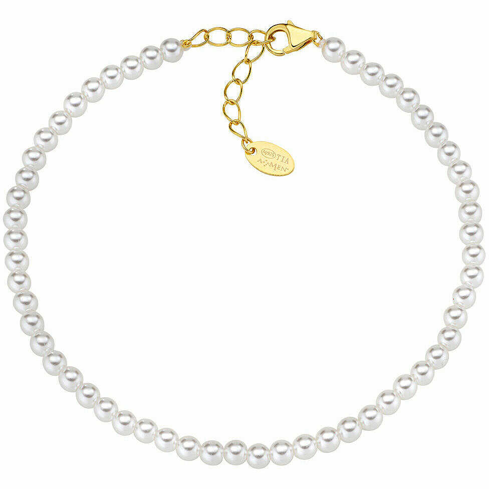 Amen women's bracelet with 3 mm diameter crystal pearls and an adjustable length from 16 to 19 cm with an extension chain and lobster clasp.