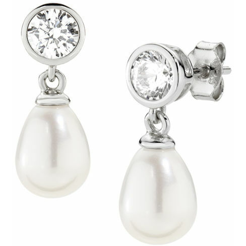 Silver earrings with a 7mm drop-shaped pearl and a light point.