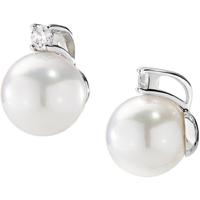 Women's earrings with 10 mm pearls and white zirconia with butterfly closure made of silver.