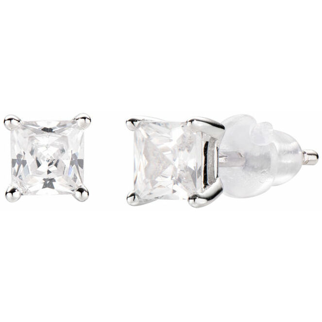 Unisex earrings made of 925 silver with 4 mm square white zircons.