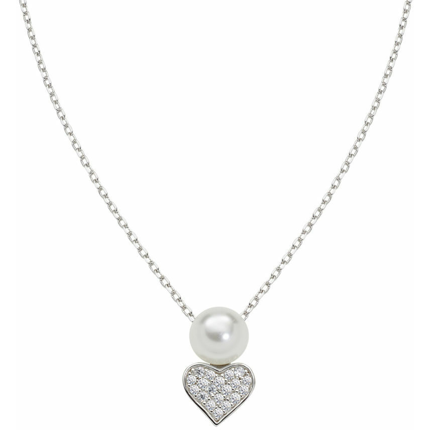 Women's necklace with heart and pearl in silver from the Amen collection.