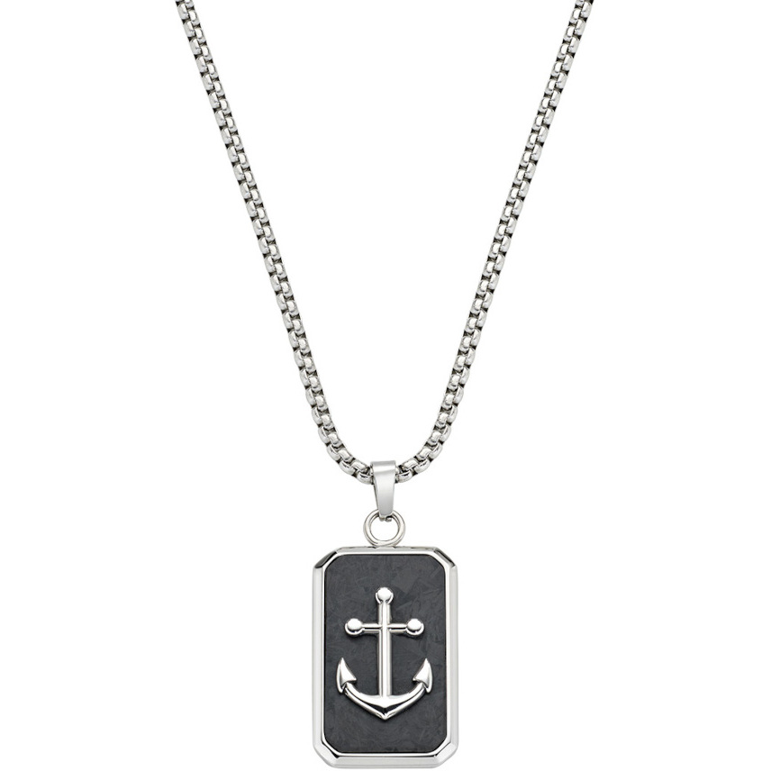 Men's necklace in tubular steel mesh with a length of 50 cm and lobster clasp complete with a 2.7 cm long pendant tag with carbon fibre insert and symbol of the Still in relief .