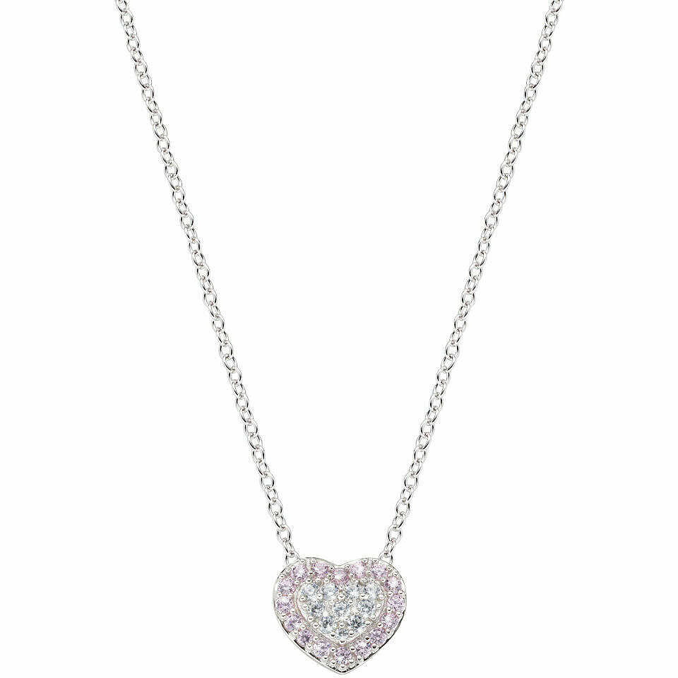 Silver necklace with a length of 40/45 cm with lobster clasp and heart pendant in pavé of white and pink zircons with a size of 8 mm.