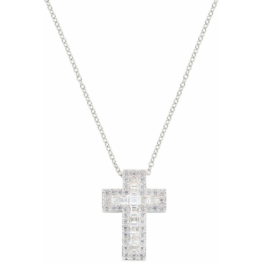 Unisex necklace made of 925 silver with cross-shaped pendant with white zircon pavé.