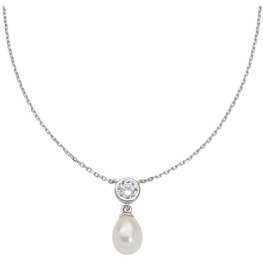 Women's silver necklace with round light point and 7 mm drop pearl.