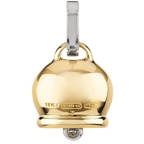 Pendant Medium bell in 18Kt yellow gold, diamonds and diamond pavé rooster