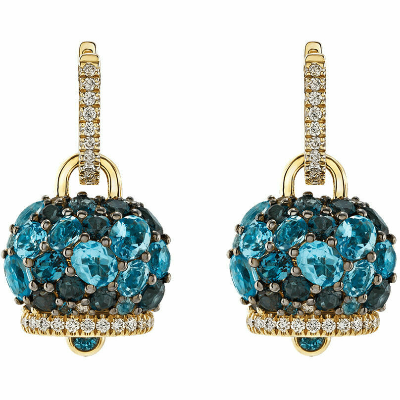 Chantecler Campanella earrings made of 9kt yellow gold with pavé of oval-cut blue topazes for a total carat weight of 9.16 ct. and diamonds for a total carat weight of 0.58 ct.