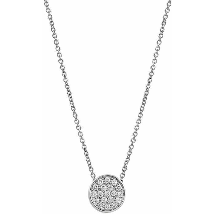 Chantecler Paillettes necklace made of white gold with pavé diamonds for a total carat weight of 0.47 ct. and white enamel on the back.