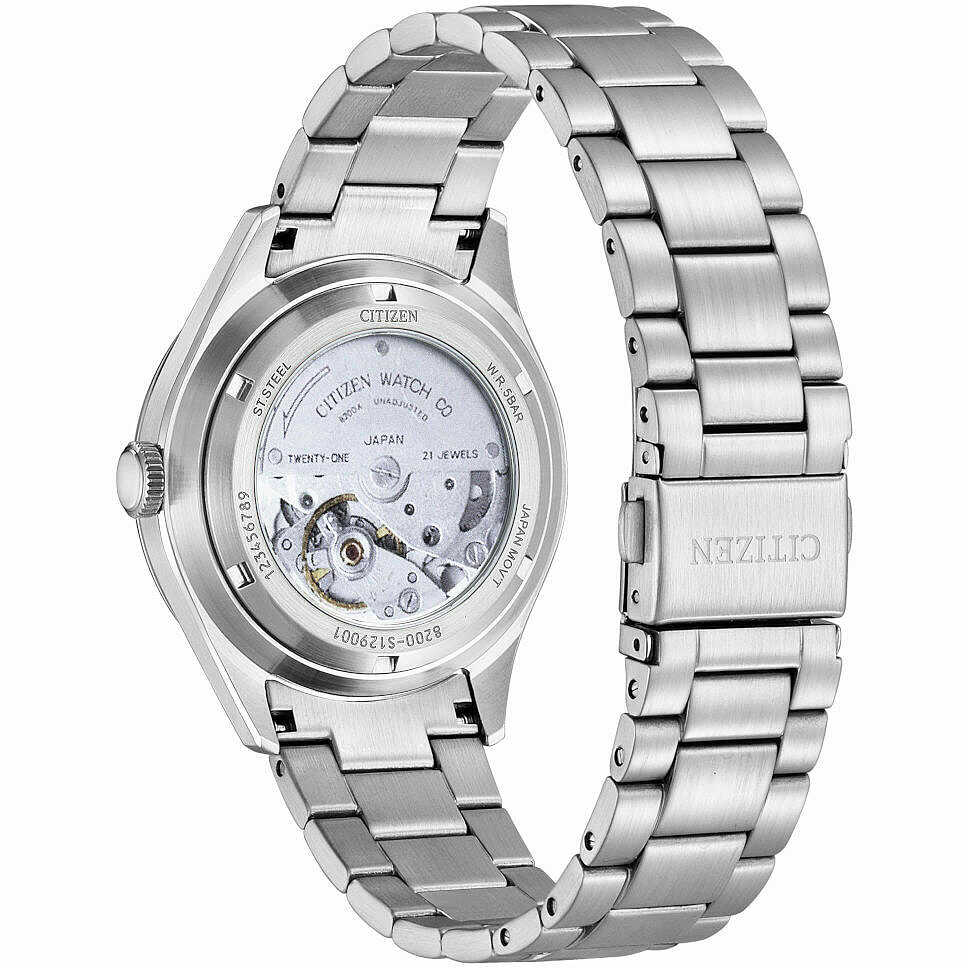 The 40mm steel case features sapphire crystal and a glass window on the case back to reveal the automatic movement. The bracelet is steel. The dial is blue with steel indexes and hands. Water resistance is guaranteed to 5 bar.