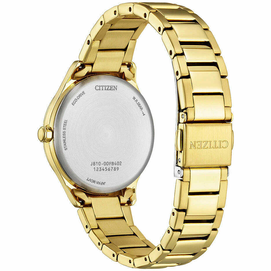 Citizen women's watch made with a 33.5 mm gold-tone steel case and a gold-tone steel strap.