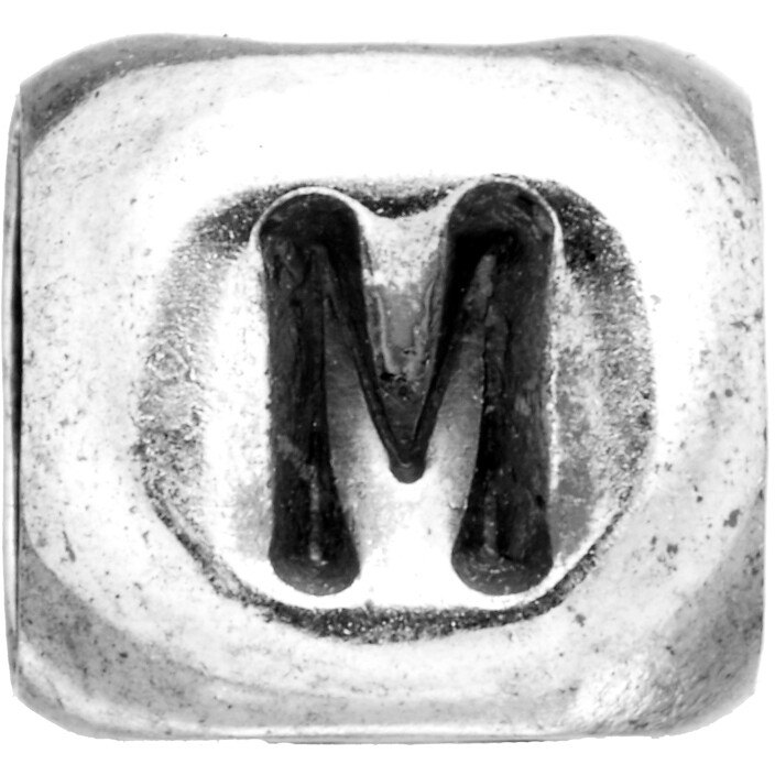 Raspini silver charm bead with letter M engraving made to personalize the bracelet.