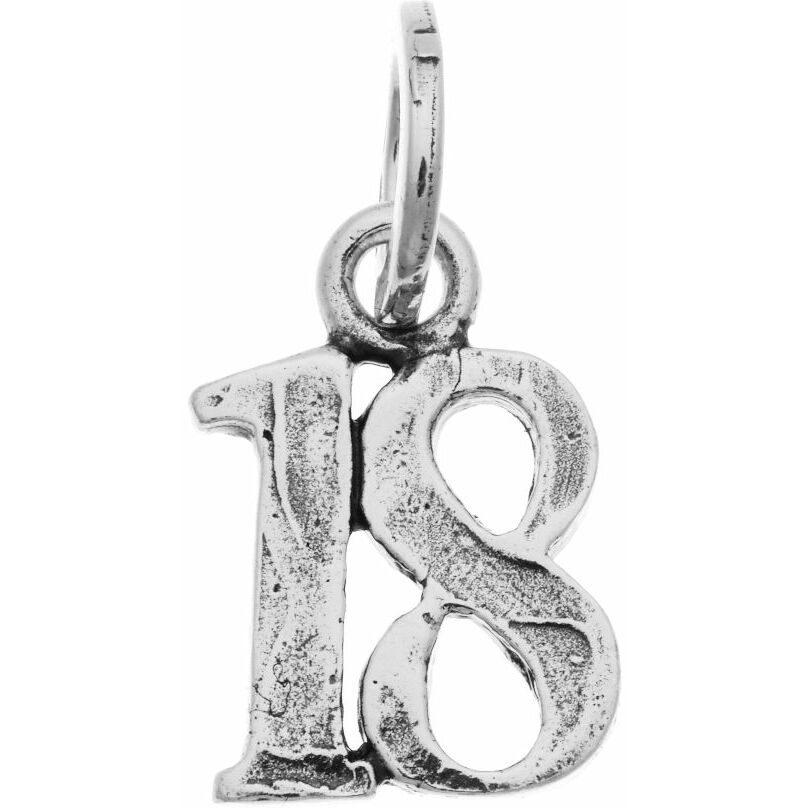 Raspini "18" pendant made of silver with a height of 1.7 cm plus a 0.9 cm logo link.