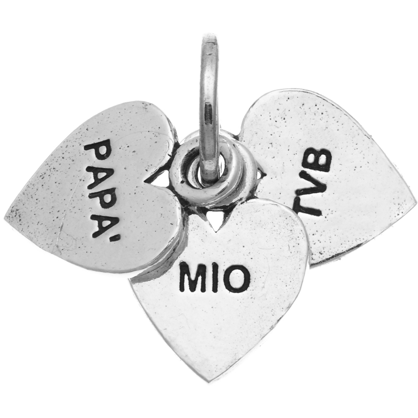 Ciondolo Raspini in argento tre cuori con incisione "Papà mio TVB".