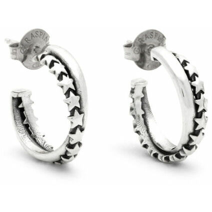 Raspini double hoop Stella earrings made of silver with a smooth and very bright band and one with a Stella decoration.