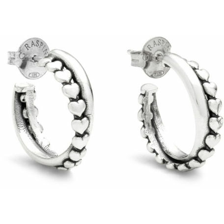 Raspini double hoop Stella earrings made of silver with a smooth and very bright band and one with a Heart decoration.