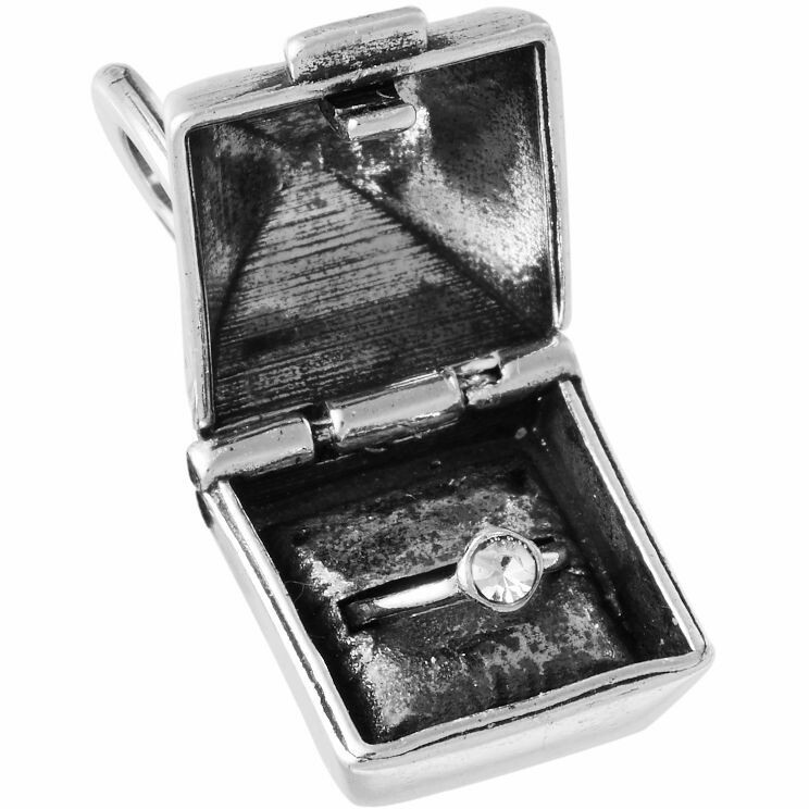 The pendant depicts a box containing a solitaire ring, a symbol of eternal love.