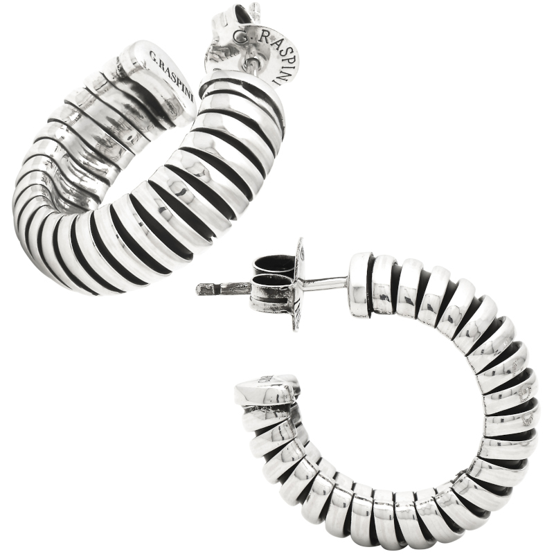 Raspini Tubogas earrings made of silver with an internal diameter of 1.5 cm and a butterfly closure.