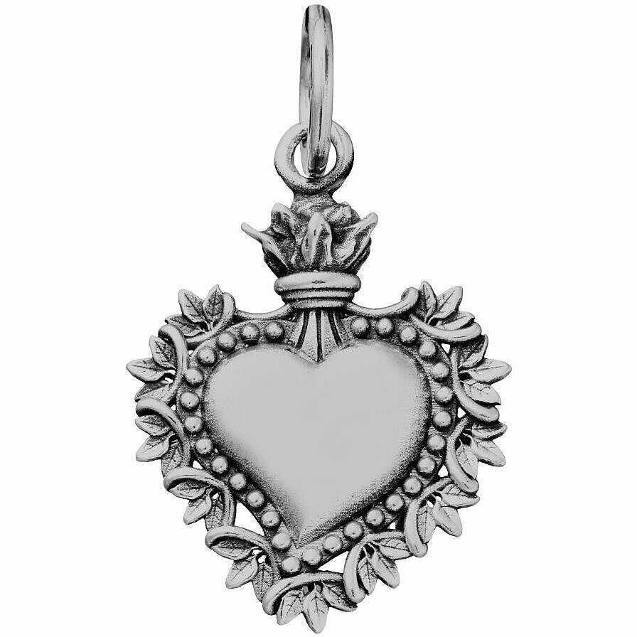 Raspini Votive Heart Pendant with Leaves made of silver with a height of 2 cm plus a 0.9 cm logo link.