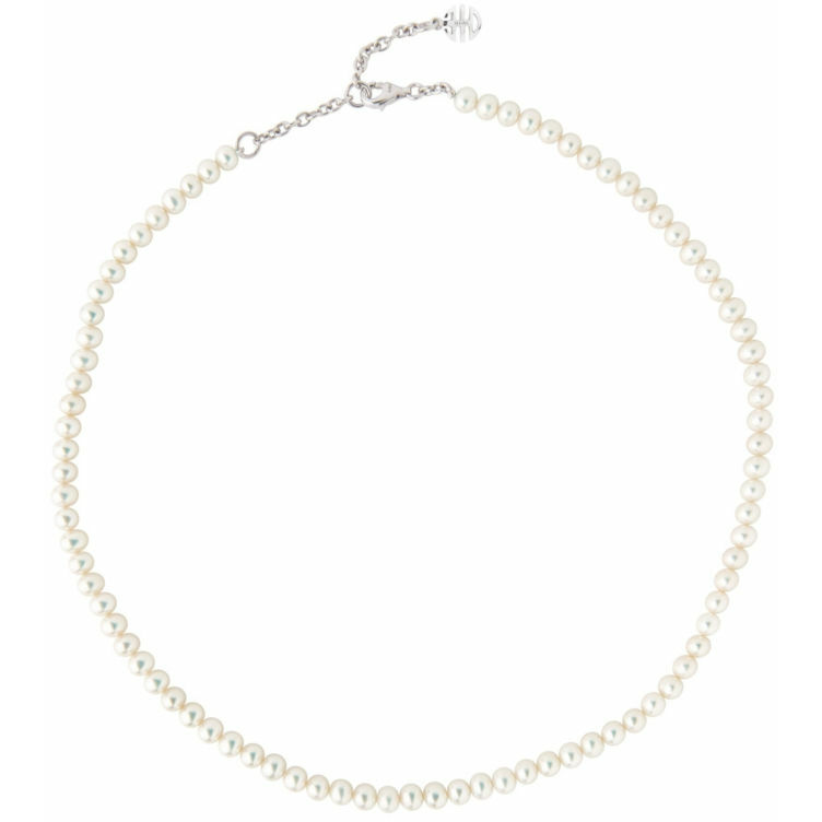 Elastic Mimì necklace with white pearls with a diameter of 5.5-6 mm and silver clasp with everybene charm pendant.
