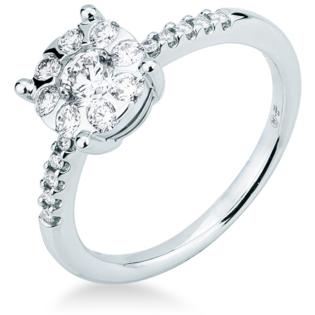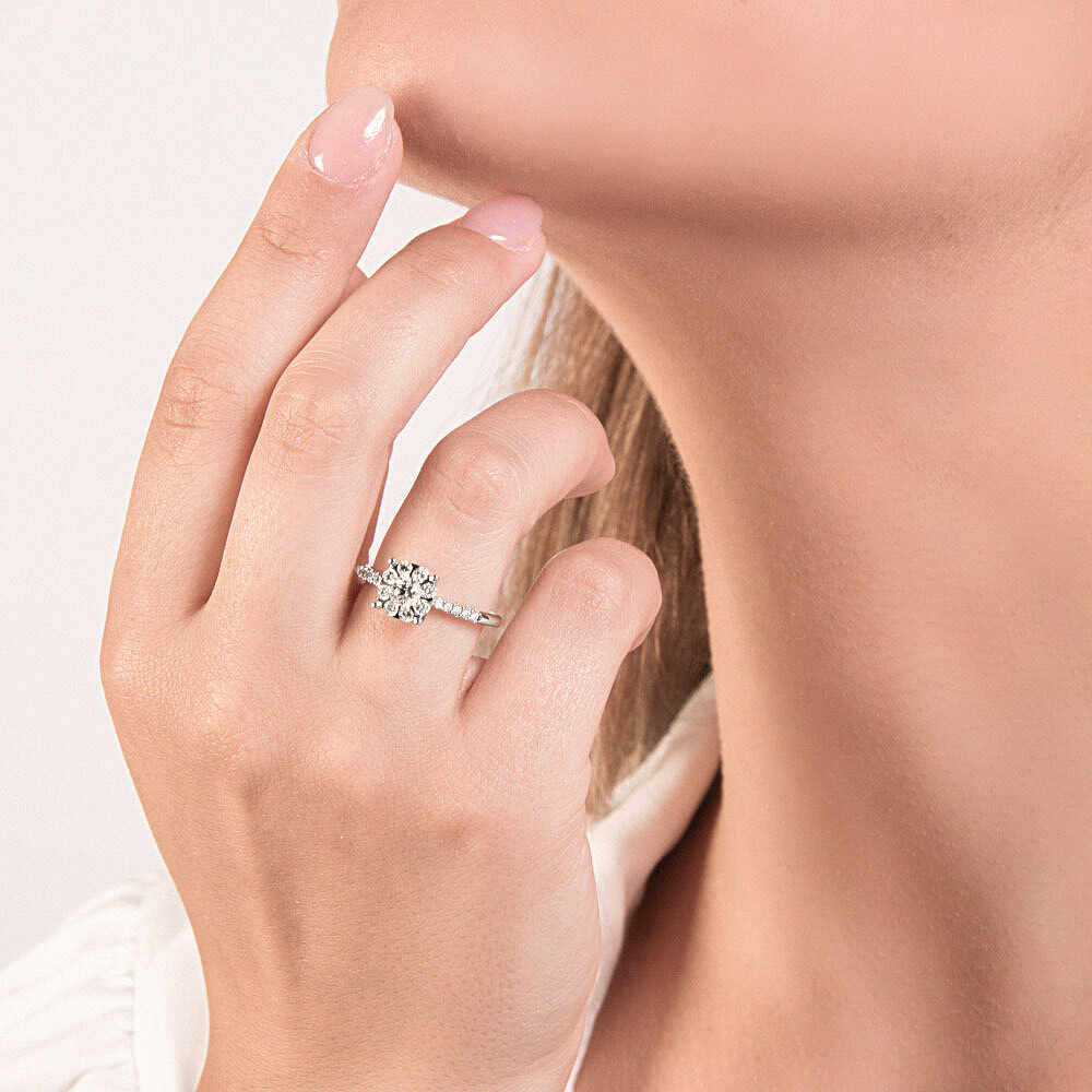 Visconti women's ring made of white gold with a central pavé diamond and brilliant-cut diamonds on the shank for a total carat weight of 0.68 ct.