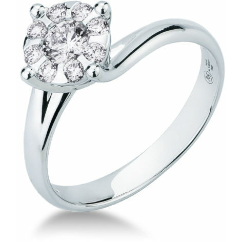 Visconti Solitaire ring made of white gold with a round multi-stone setting featuring a 0.28 ct. central diamond and a 0.20 ct. surround, for a total carat weight of 0.48 ct.
