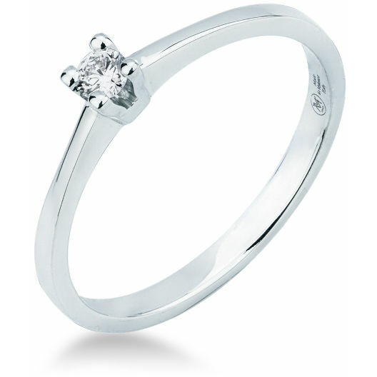 Women's solitaire made of white gold with a central diamond of 0.07 ct. and 4-prong bezel.