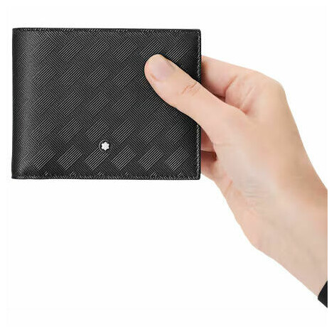 The Montblanc Extreme Wallet is crafted from soft, black full-grain cowhide embossed with the Extreme 3.0 pattern. It offers six card slots and two compartments for banknotes, as well as two additional pockets for small essentials.