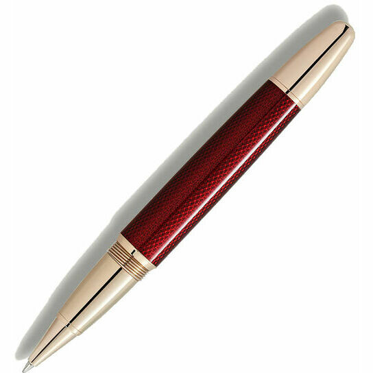 A Montblanc rollerball pen inspired by the hypnotic colors of sunset, the Montblanc Meisterstück Solitaire Golden Hour LeGrand features an engraved hexagon pattern, covered in translucent burgundy lacquer with signature gold-coated details. The hexagon pattern on the barrel and cap recalls the refraction of light at dusk in cities. By "signature gold" and/or "signature gold-coated," Montblanc describes the luminous yellow gold hue that has become a symbol of the Maison's writing instruments.