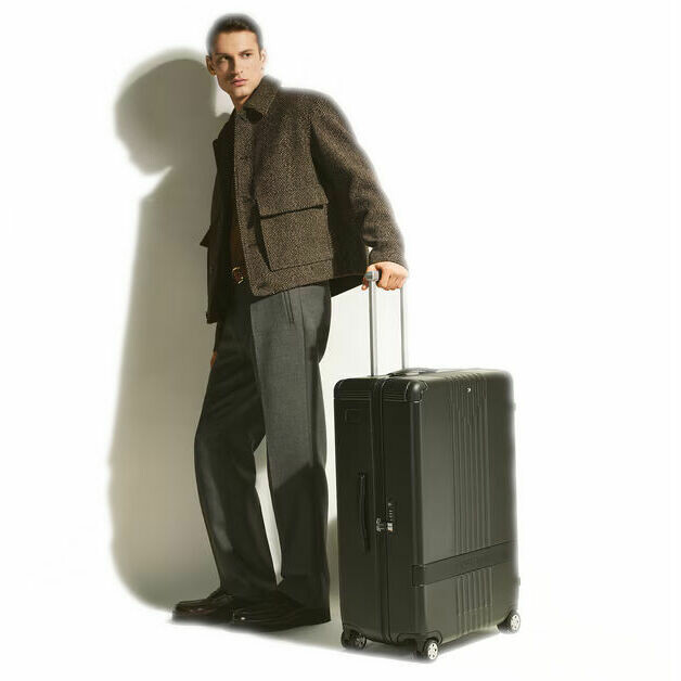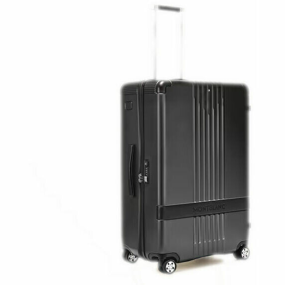 This large-capacity Montblanc trolley is crafted from lightweight black polycarbonate with refined black leather trim. It glides effortlessly on four silent, ball-bearing wheels, a sturdy multi-length handle with a multi-locking system, and comfortable leather handles.