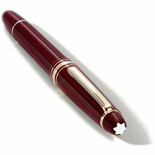 The timeless design of the Montblanc Meisterstück Classique Bordeaux evokes the history of the Maison, which has chosen burgundy as its signature shade since the 1920s. Since then, this color has remained a key element in Montblanc's heritage. The cap and barrel of the Meisterstück Bordeaux fountain pen are crafted from burgundy precious resin with distinctive gold-plated details, inlaid with the iconic white Montblanc emblem at the cap's top. The writing instrument is enhanced by a handcrafted 14K / AU 585 solid gold nib with a distinctive gold finish. By "distinctive gold finish," Montblanc describes the luminous yellow gold hue that has become a symbol of the Maison's writing instruments.