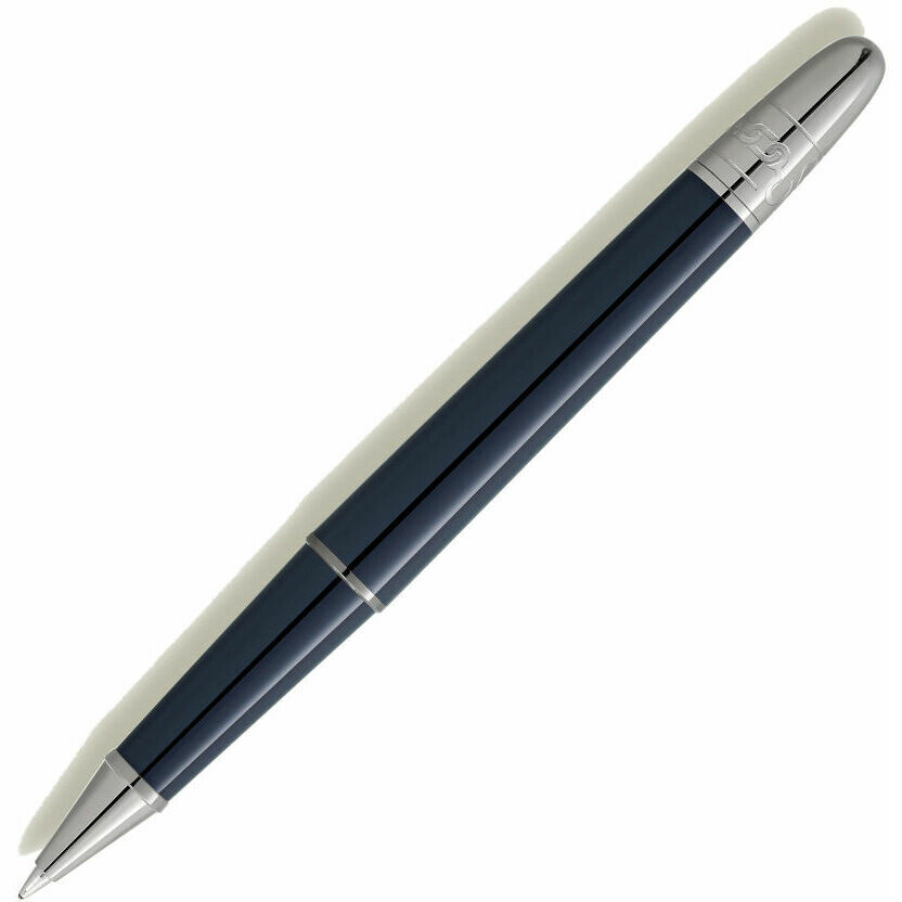 The Meisterstück Around the World in 80 Days collection is inspired by Jules Verne’s famous adventure novel “Around the World in 80 Days”. The Montblanc rollerball pen, adorned with deep blue precious resin, recounts the epic journey of Mr. Fogg and Passepartout. On the final leg from Yokohama to London via the United States, the duo crosses the vast American continent by train. Contemplate the elaborate details: an elegantly laser-engraved train on the cap, a safety chain motif on the cone, which reproduces a rotating motion when Passepartout detaches the train from the locomotive to save the crew attacked by the Sioux. The cap design immortalizes the pressure valves and smoke of the locomotive, while the clip displays the red lacquered ace of hearts, symbolizing the union of Phileas Fogg and Princess Aouda. In addition, the card suits represent Fogg's daring bet to complete the journey in just 80 days. The top of the cap is embossed with the chronology of the journey: 36 days from Yokohama to London, culminating in a total of 80 days around the world.The dimensions are 136.9x12.4 mm.