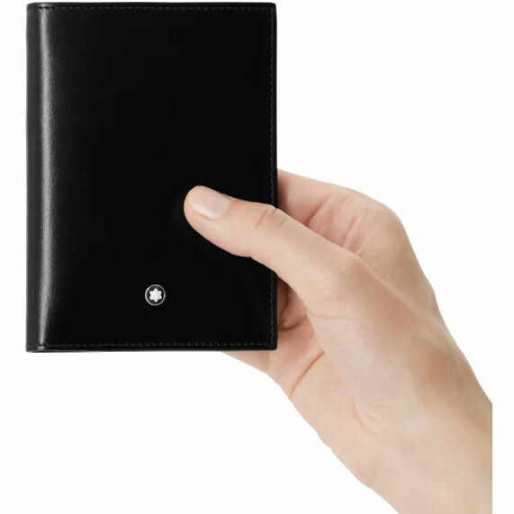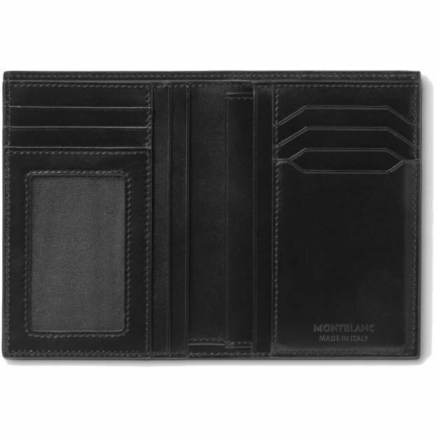 With its classic design, this elegant wallet holds seven credit cards in special slots, as well as a transparent pocket to easily view essential identification documents. It also features a compartment for banknotes and four additional pockets. Crafted from smooth leather, it is lined with black fabric and is finished with the Montblanc emblem.