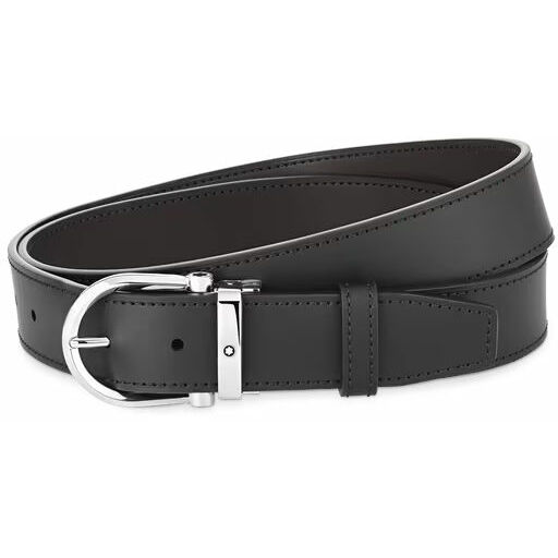 Montblanc belt made of reversible black and brown leather with a horseshoe-shaped pin buckle with shiny palladium finish.