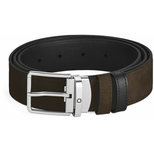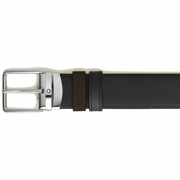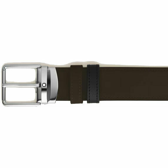Montblanc 35mm wide reversible belt, on one side is made of grained leather in an elegant shade of brown, while the other is made of luxurious and soft black leather.