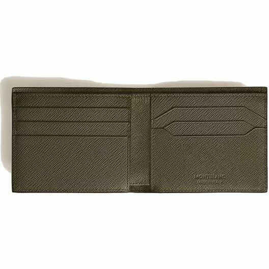 Slim and elegant Montblanc wallet made of khaki embossed Sartorial leather, the interior is organized with six slots for credit cards and two compartments for banknotes and two additional pockets perfect for receipts and notes.