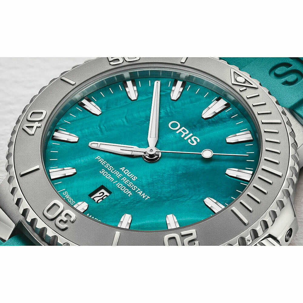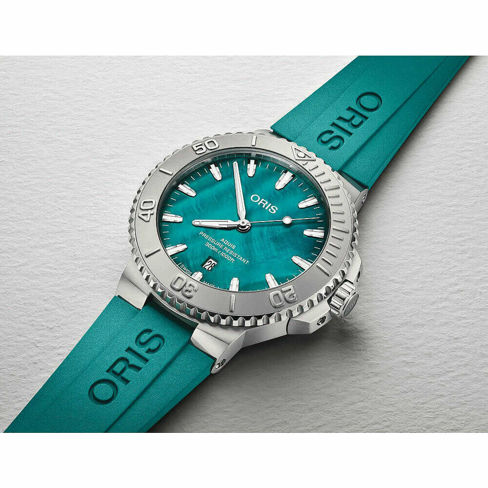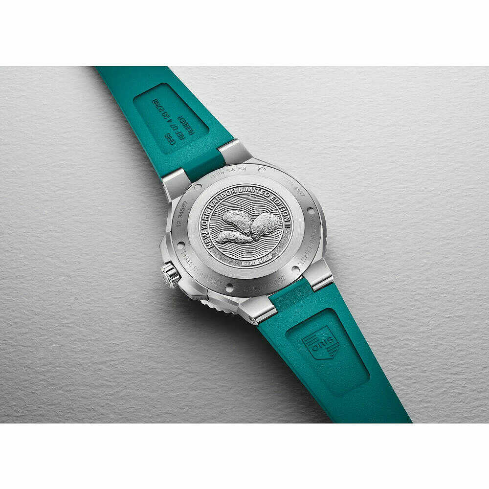 The Oris Aquis New York Harbor watch created for the Billion Oyster Project features a case made of round shape , made in stainless steel from 43.5 mm.