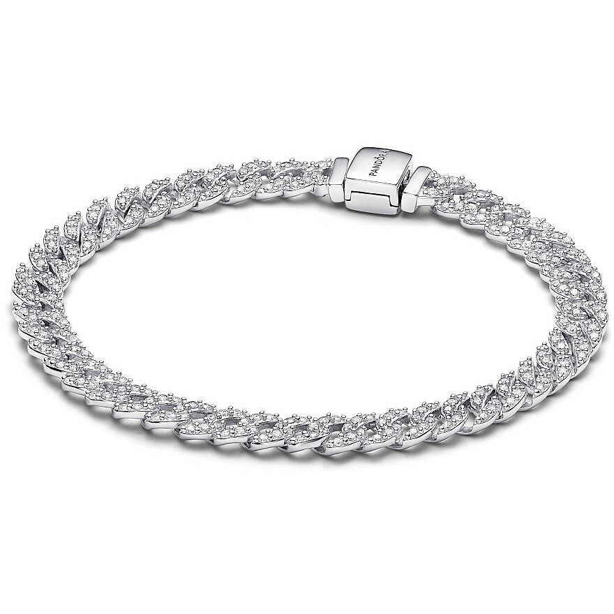 Pandora Bracelet Cuban Link Chain Pavé in silver.