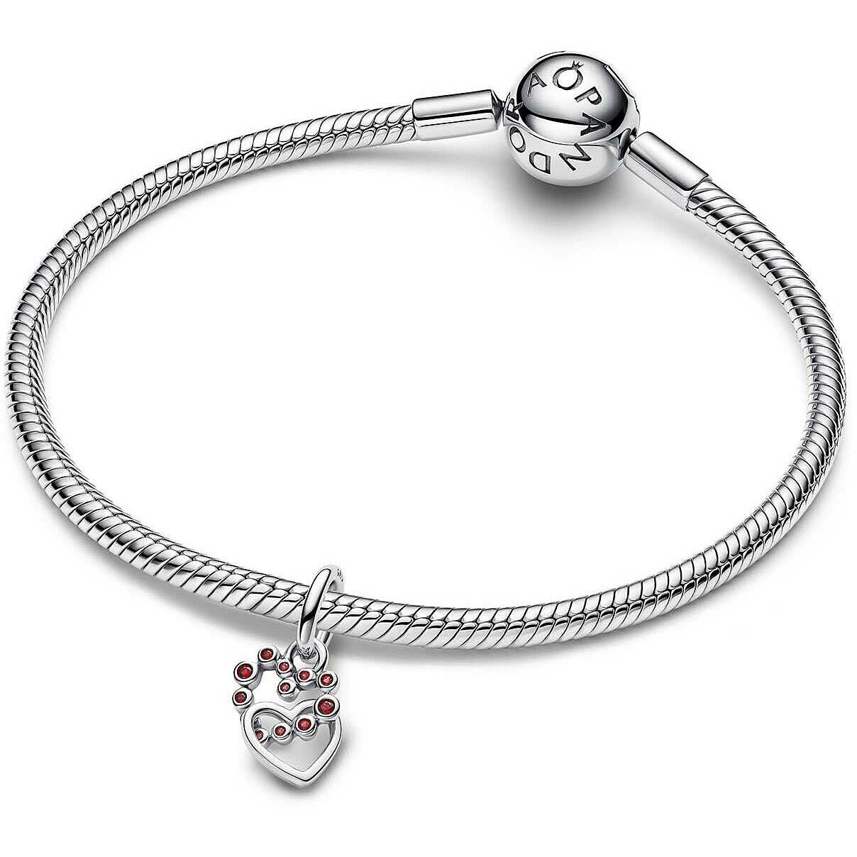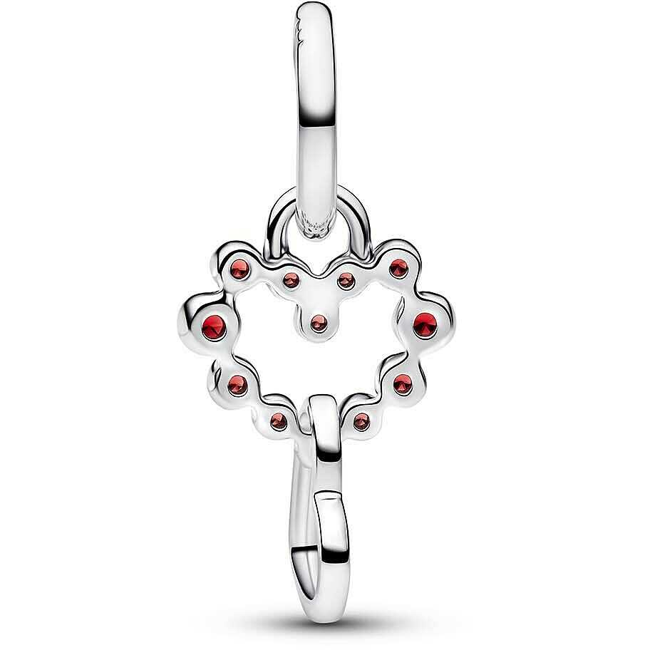A symbol of connection and love. This silver Pandora pendant features deep red crystals set in a heart shape and a second heart that moves freely, beautifully catching the light.The reference is 794435C01 .