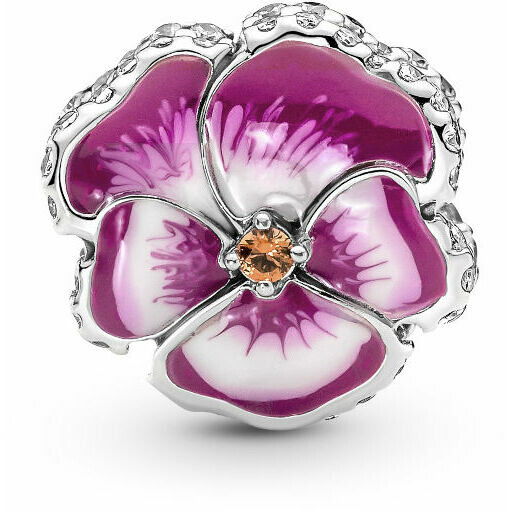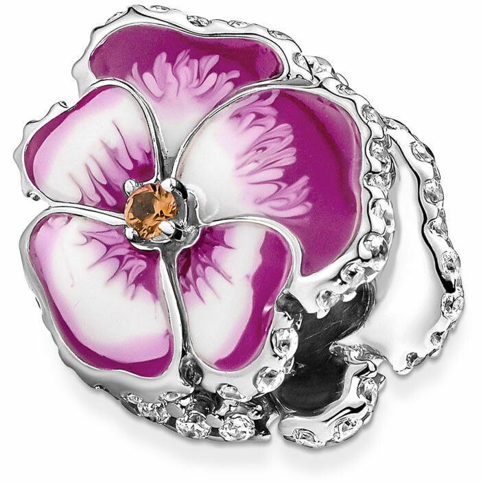 Each violet is crafted from sterling silver, set with sparkling clear cubic zirconia stones and finished with hand-applied enamel, making each flower absolutely unique.